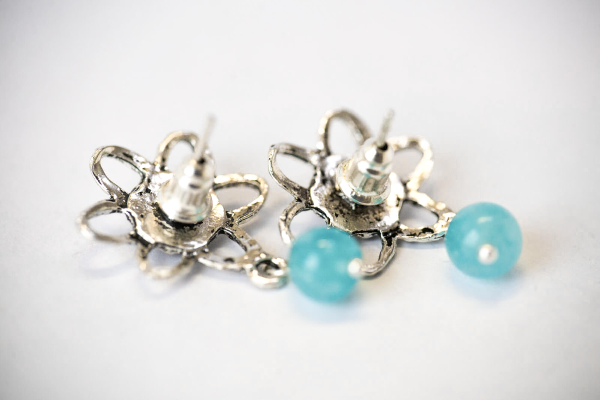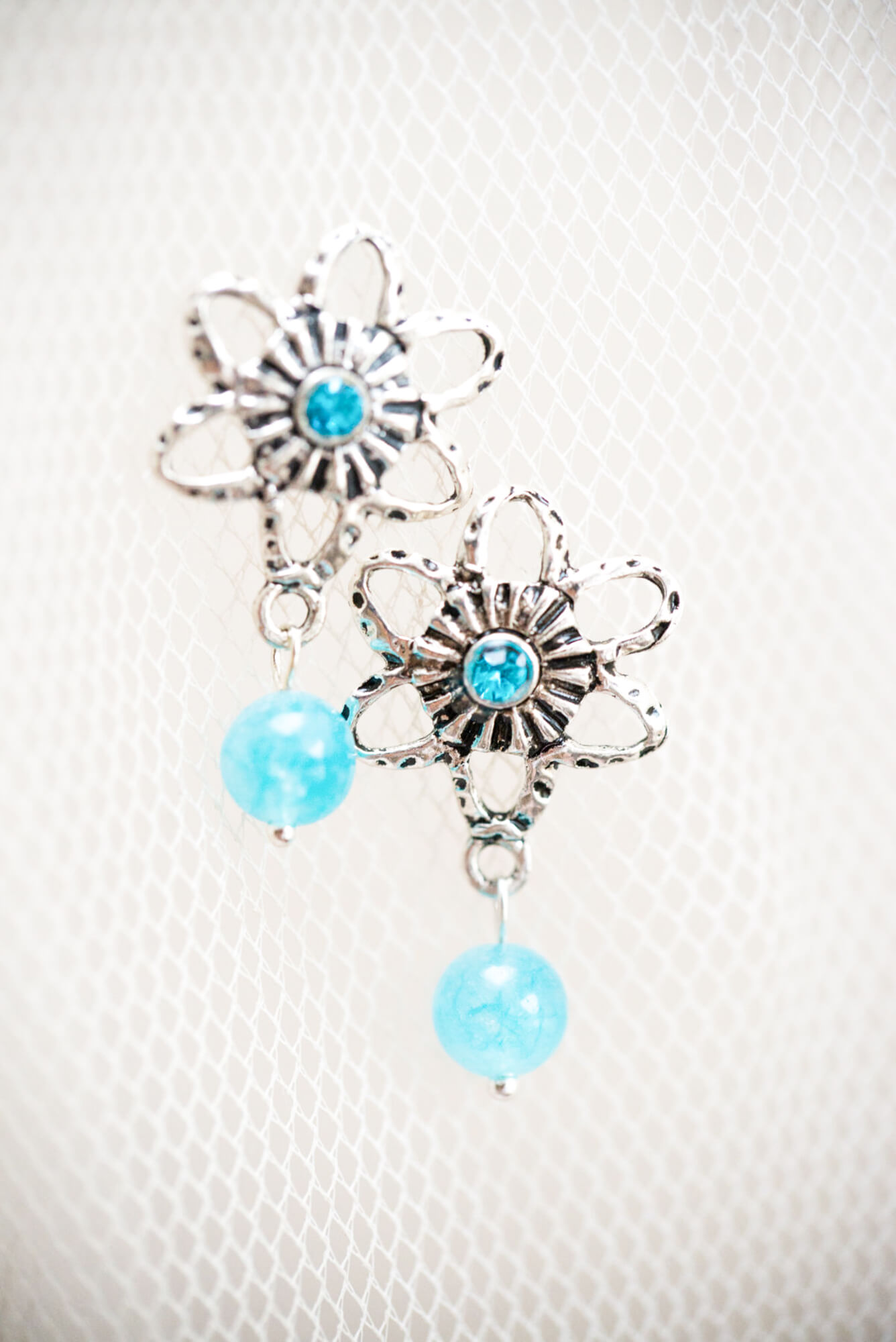 Akvamariiniga kõrvarõngad. Niklivabad kõrvarõngakonksud. Võivad esineda värvivariatsioonid.