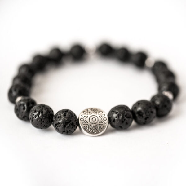 Laavakivist käeehe. Käeehte keskmes on kaheksakand ehk Muhu mänd – iidne märk, mida tuntakse ka tänapäeval, kui õnne ja kaitse märki. Metallelelmendid on valmistatud hõbetatud vasesulamist. Niklivaba.Võivad esineda värvivariatsioonid