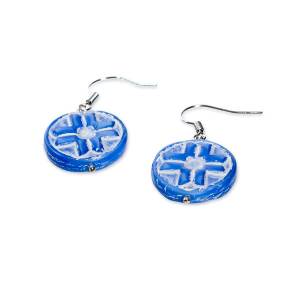 Need sinise ja valge kombinatsiooniga kõrvarõngad toovad meeltesse Eestimaa taeva ja järved. Sinine on rahu, tõe ja harmoonia värv, mis koos valge taustaga mõjub värskelt ja puhtalt. Kaheksakand ehk õnnetäht ehte keskel on iidne kaitsemärk, mis hoiab kandjat ja näitab teed.