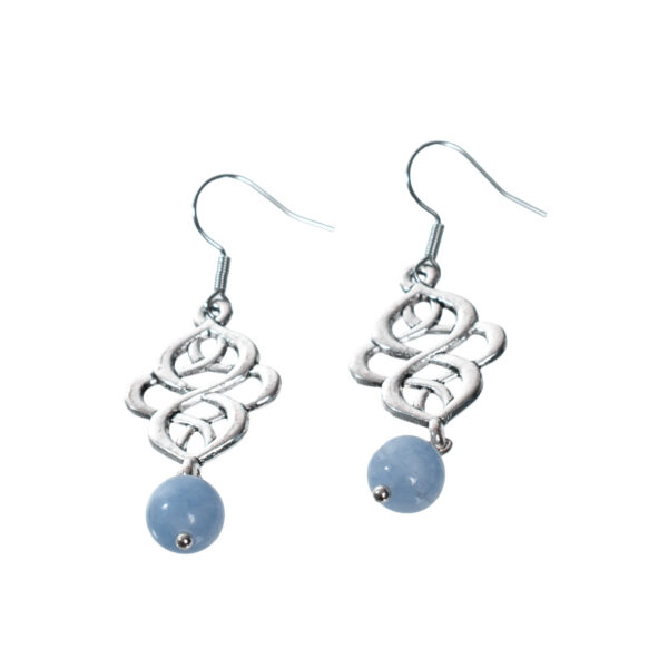 Etnostiilis antiikhõbedase metallelemendiga akvamariinist kõrvarõngad. Niklivabad kõrvarõngakonksud. Võivad esineda värvivariatsioonid.