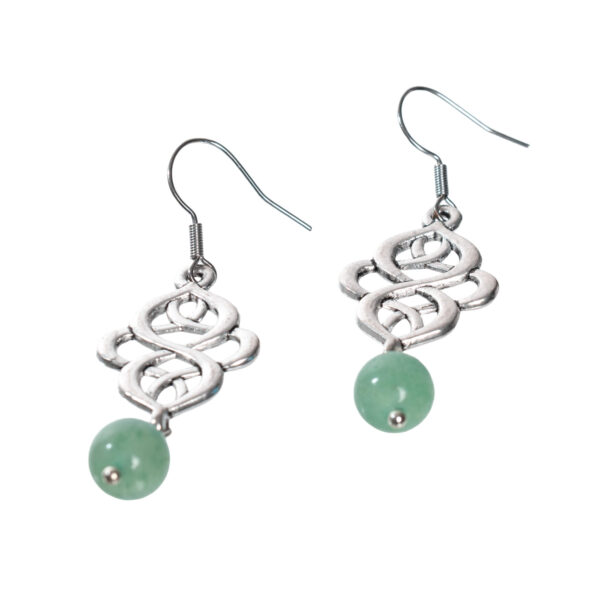 Etnostiilis antiikhõbedase metallelemendiga aventuriinist kõrvarõngad. Niklivabad kõrvarõngakonksud. Võivad esineda värvivariatsioonid.