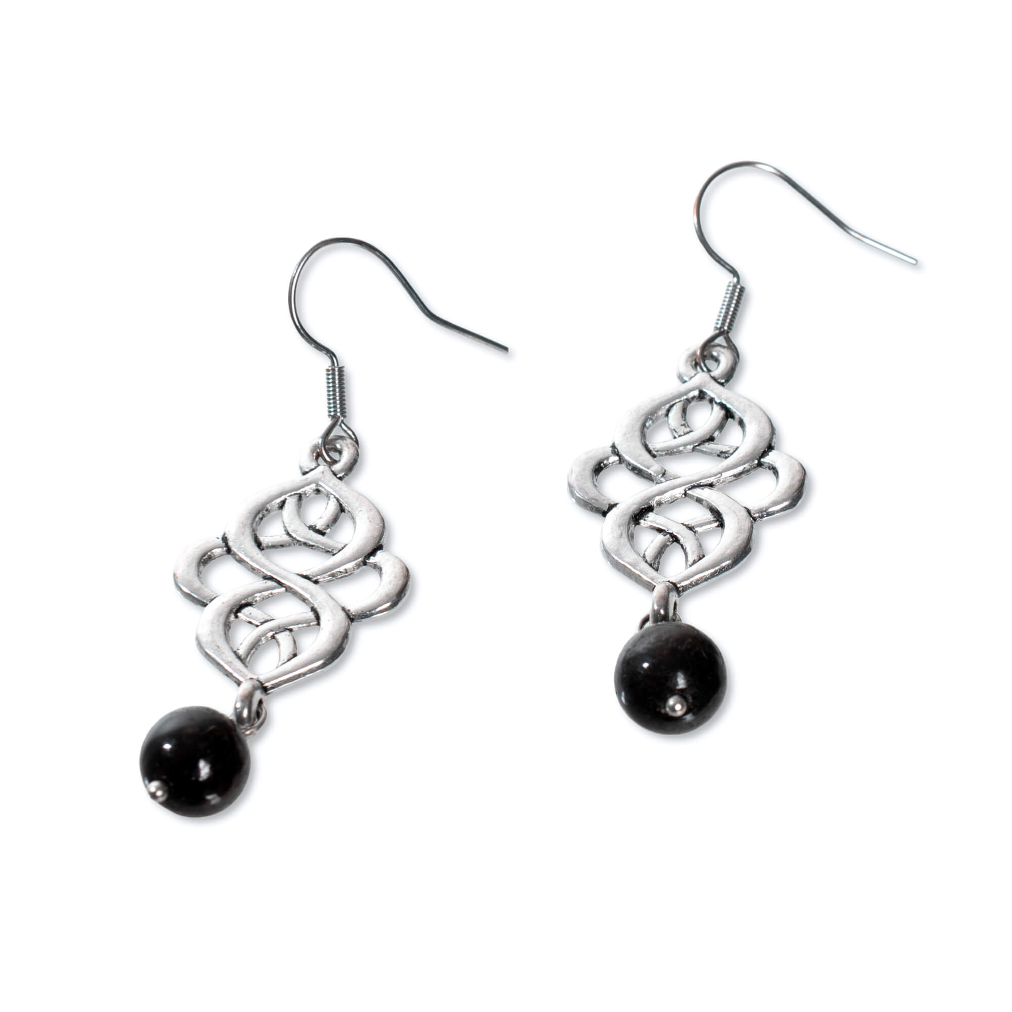 Etnostiilis antiikhõbedase metallelemendiga granaadist kõrvarõngad. Niklivabad kõrvarõngakonksud. Võivad esineda värvivariatsioonid.