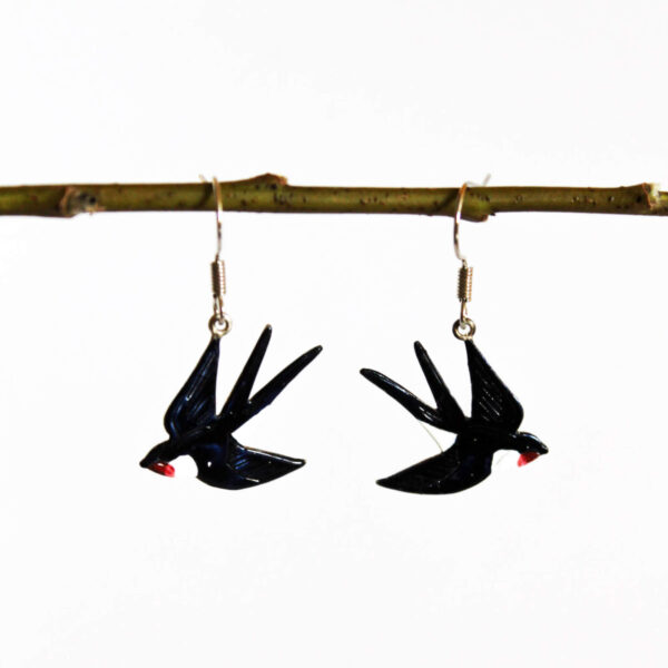 Pääsukese kujulised kõrvarõngad. Käsitsi glasuuritud.