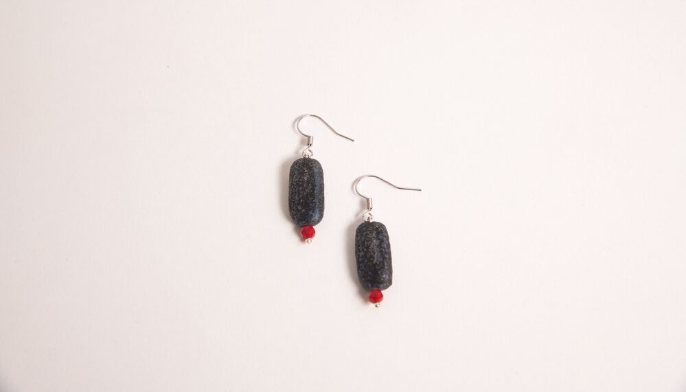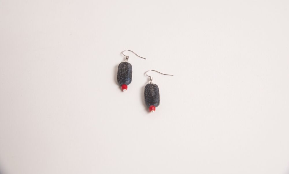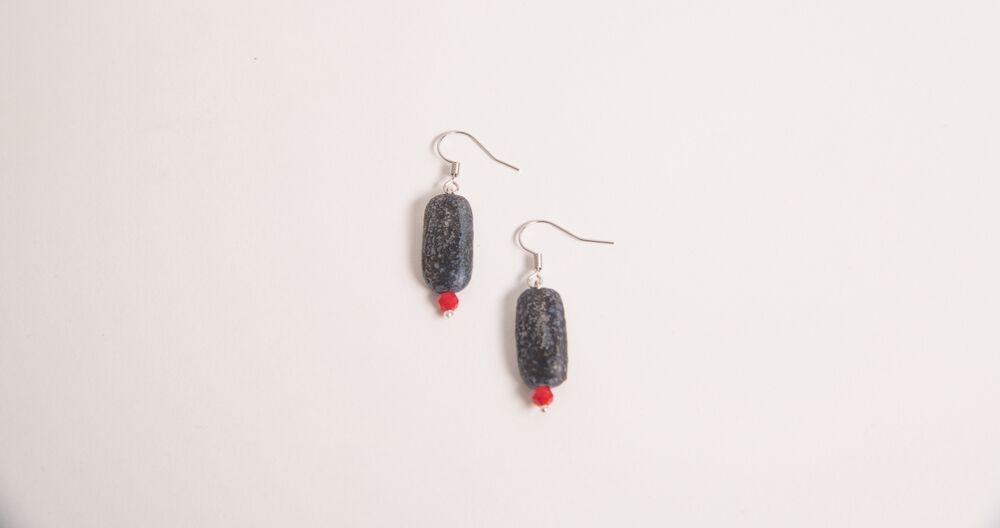 Kõrvarõngad_must-hall_punane täpp_ristkülik_lühike haak