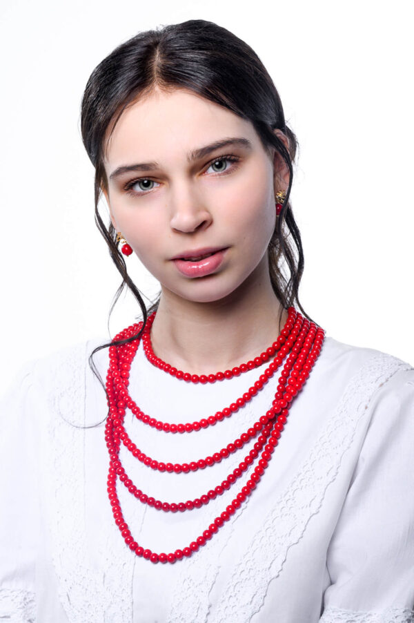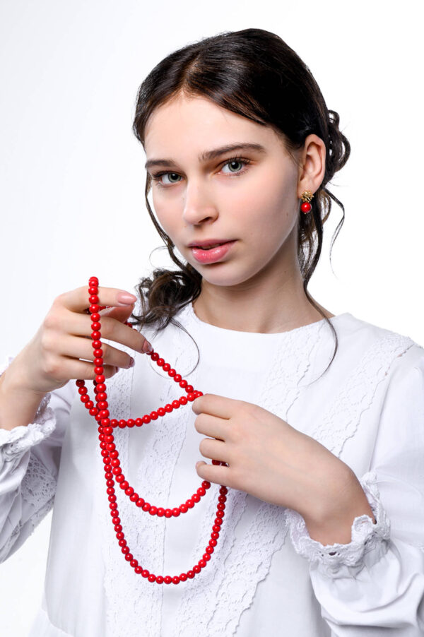 Kvaliteetsed punasest klaasist helmed 8mm. Metallelemendid on valmistatud hõbetatud vasesulamist. Niklivaba. Võivad esineda värvivariatsioonid.